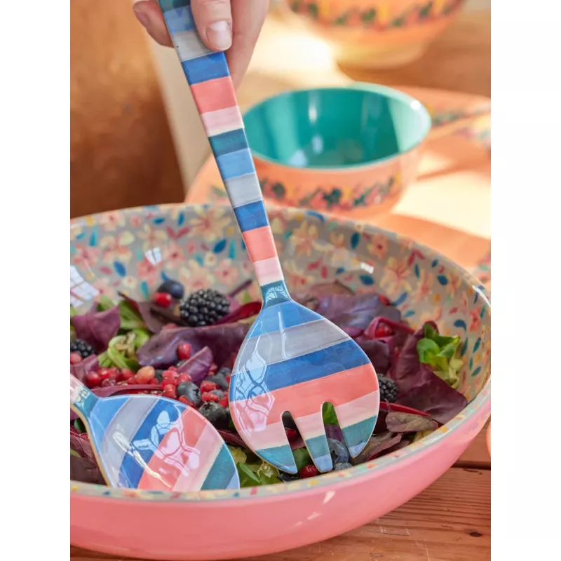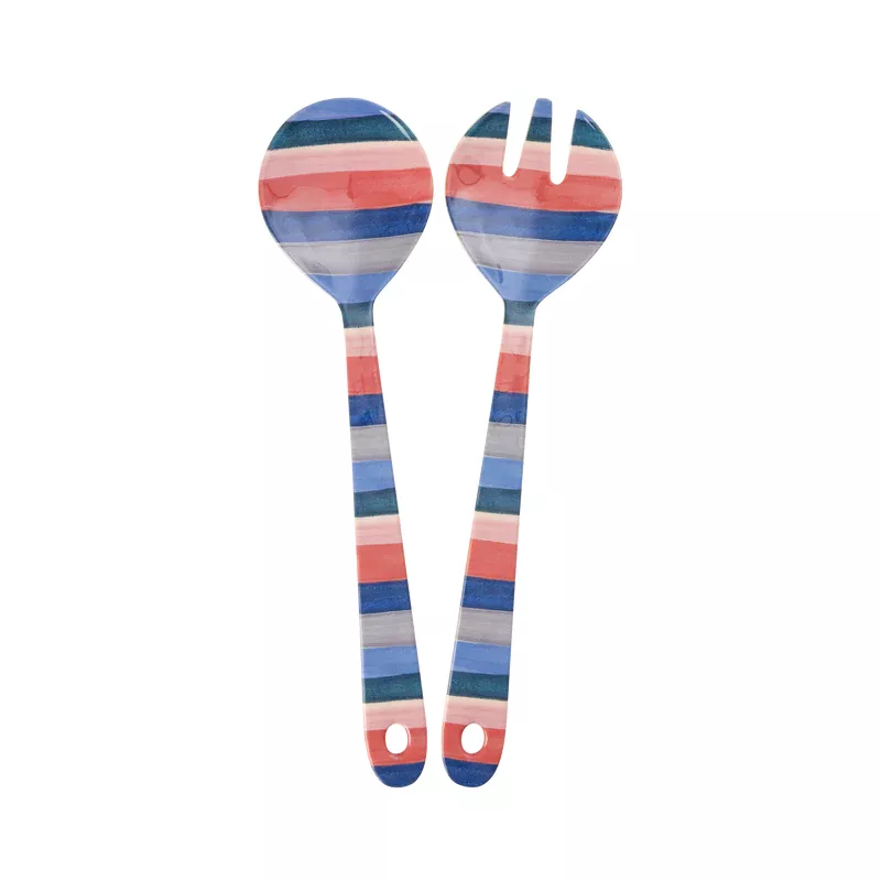 Ajoutez du style à vos salades avec ces magnifiques couverts à salade en mélamine, imprimé « N.Y. Stripes » !