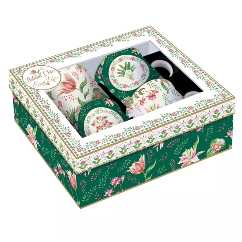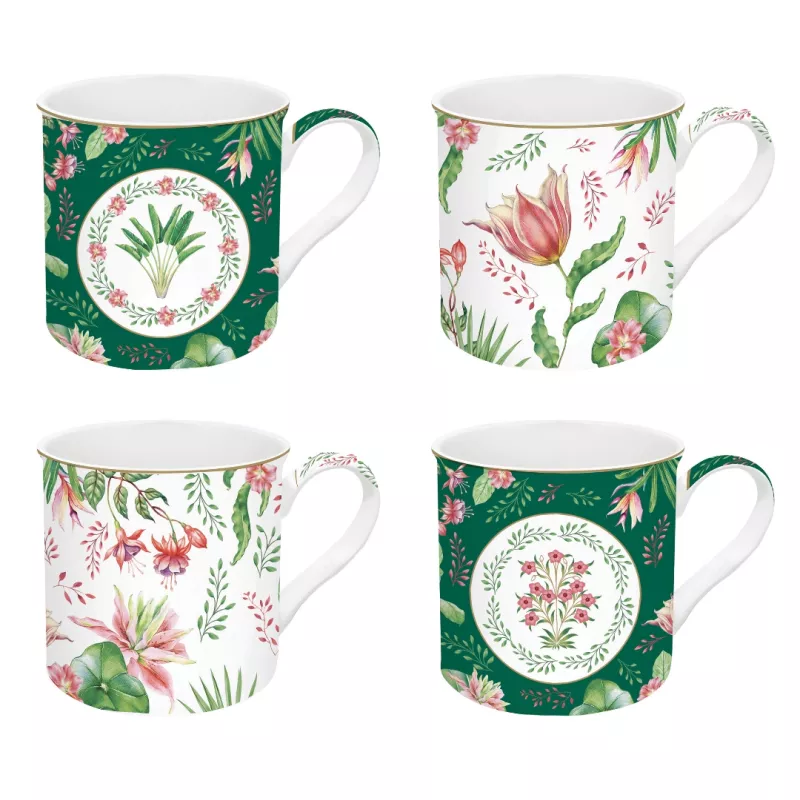 EASY LIFE BOTANIC CHIC Coffret 4 Mugs 30cl En Porcelaine