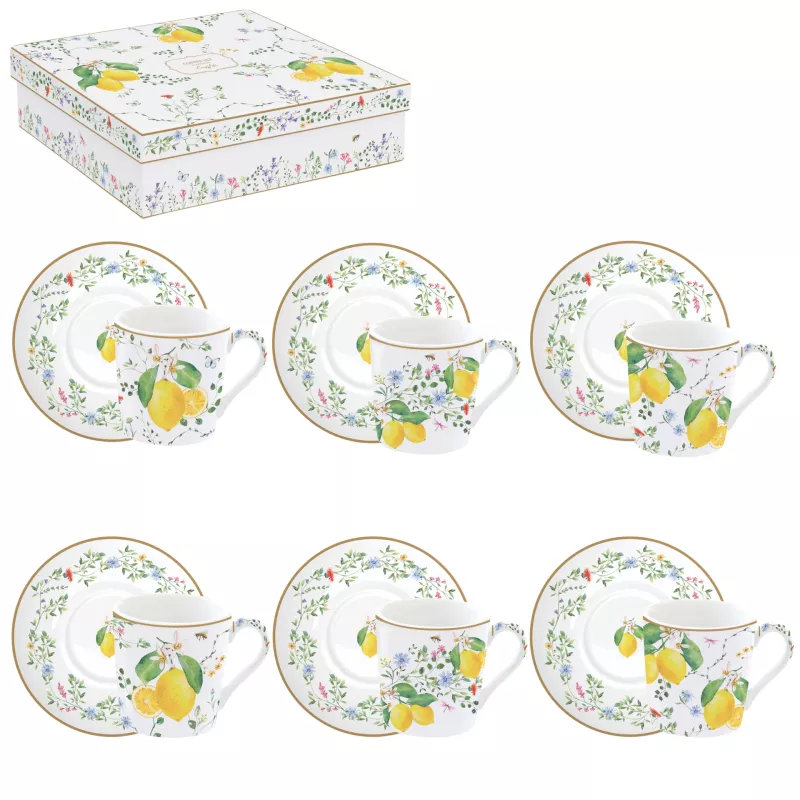 Alliant élégance et fraîcheur, chaque tasse est décorée de motifs délicats de citrons et de fleurs, parfaits pour apporter une touche de vivacité à vos moments de café.