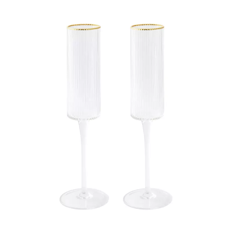 Flûte en verre plissé transparent avec fil d’or d’une capacité de 200 Ml