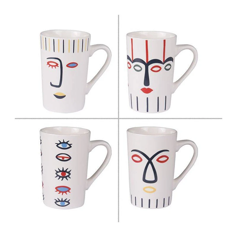 Ensemble de 4 mugs en porcelaine blanche décor tendance et coloré